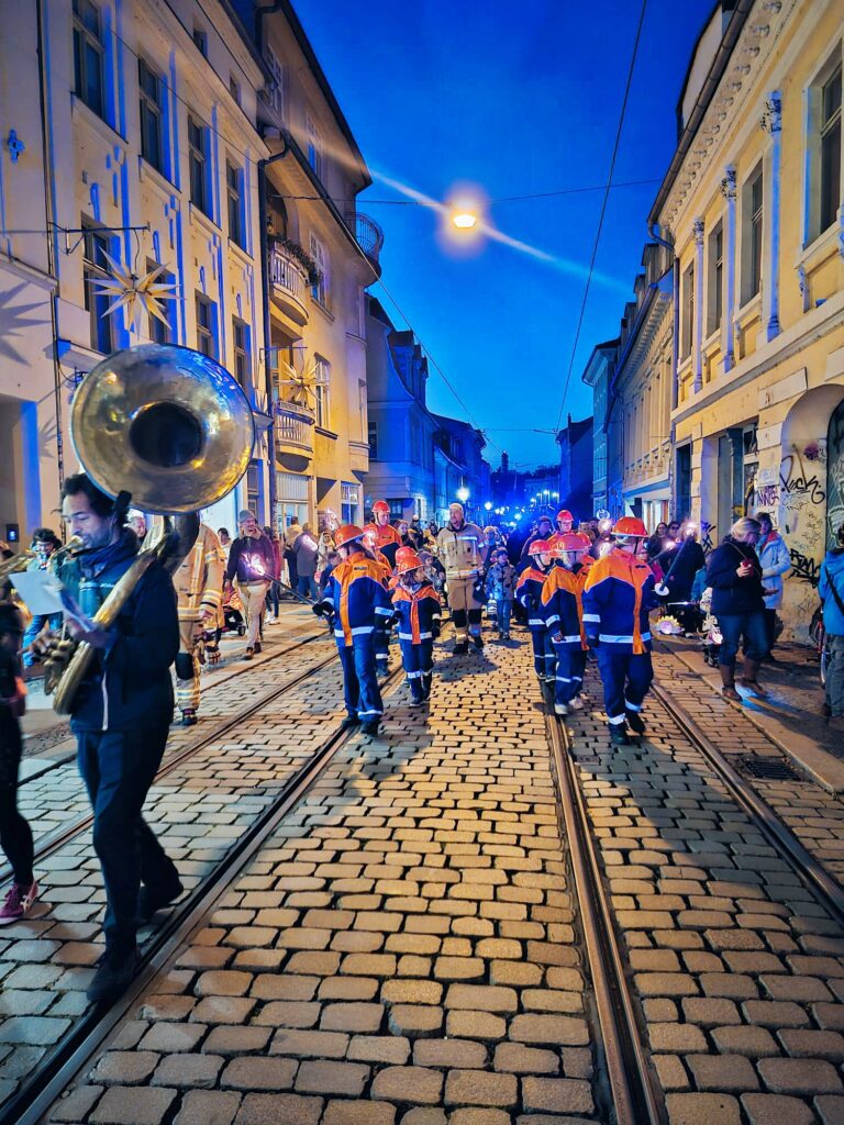 Heute, den 07.11.2025, begleitete unsere JF den Lampionumzug durch die Stadt bis zum Neustädtischen Markt mit Fackeln. Musikalisch untermalt wurde der Umzug von walkabees.